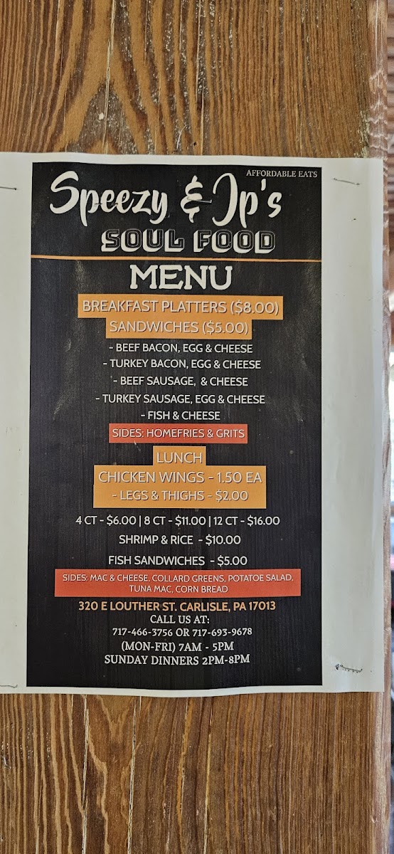 When you're looking for a true taste of comfort and Southern charm, Speezy's Soul Food Menu has you covered. Located at 330 E Louther St in Carlisle, PA, this spot serves up hearty, flavorful dishes that remind you of home. Whether you’re craving crispy fried chicken, tender ribs, or a plate of flavorful collard greens, every bite is packed with authentic Southern goodness. With a variety of mouthwatering options, there’s something for everyone - from traditional soul food staples to inventive twists on classic recipes. It’s a place where the food doesn’t just fill you up, it makes you feel good. The vibrant menu offers a unique experience that will have you coming back for more, every time. Come hungry, because the flavors here are sure to leave you satisfied.
